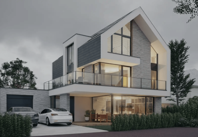 Residence takes advantage of abundant sunlight by incorporating solar panels into its architecture.